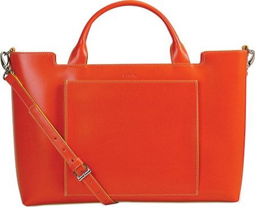100% Leather Imported cotton lining zipper closure Versatile EW tote fits all your media essentials:13 laptop, tablet, phone, and more. Features: drop in zipper closure, shiny nickel hardware, detachable adjustable shoulder strap, exterior open tablet pocket, main zip compartment fits 13 laptop, interior pocket with removable cord pouch, 2 interior media organizational pockets, 1 interior zip pocket